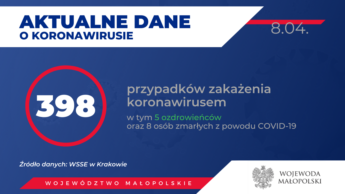 08/04/2020: Dzienny raport o koronawirusie w Małopolsce