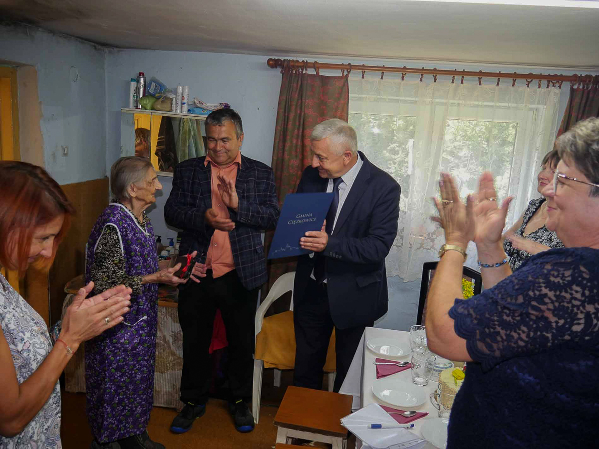 Urodzona ponad sto lat temu mieszkanka Ciężkowic wychowała 6 dzieci (Janusza, Krystynę, Helenę, Andrzeja, Grażynę i Annę), doczekała się 14 wnuków i taką samą liczbę prawnuków. Pani Maria cieszy się wciąż dobrym zdrowiem. Jubileusz ten to swoista nagroda za własną dbałość o zdrowie i dowodem na hart ducha oraz siłę charakteru. Przedstawiciele władz samorządowych wyrazili podziękowanie za wszelkie trudy i owoce minionych lat oraz za lekcję życiowej mądrości, która może być źródłem cennych rad i przykładem dla innych osób.Pani Marii Frydzie, gratulując wspaniałego Jubileuszu, składamy wyrazy głębokiego szacunku i uznania oraz życzymy kolejnych lat w otoczeniu najbliższych, miłości, wsparcia oraz dużo zdrowia.