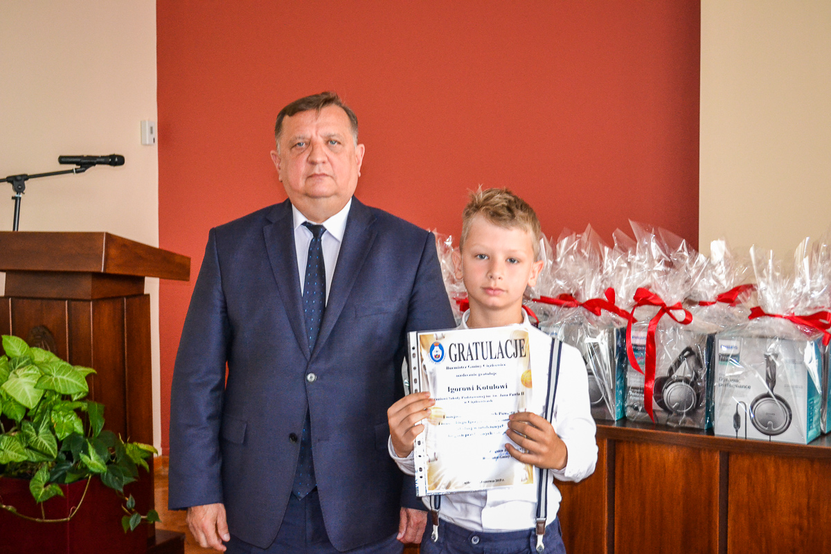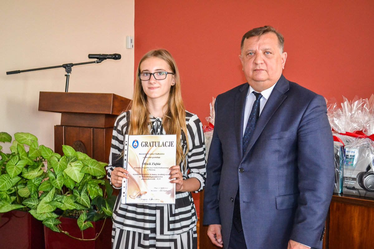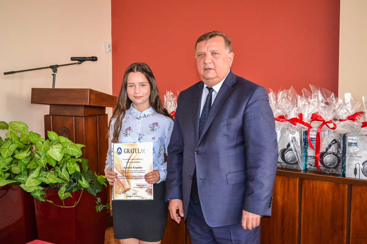 Burmistrz Zbigniew Jurkiewicz nagrodził najlepszych uczniów