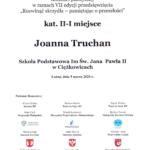 Maria Miłkowska – uczennica klasy VI – finalistka Biblijnego Konkursu Tematycznego Z dobrą nowiną przez życie;