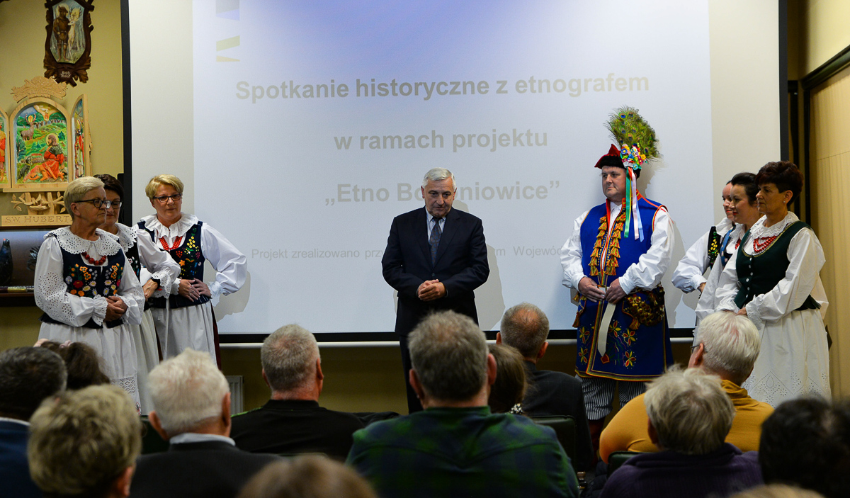 Podczas spotkania członkowie zaprezentowali specjalnie zaprojektowane i uszyte stroje ludowe inspirowane charakterystyką lokalnej tożsamości mieszkańca wsi Bogoniowice. O jego elementach pod względem antropologicznym oraz etymologicznym opowiedział w szczegółach w swoim wykładzie gość specjalny. Uczestnicy mieli okazję posłuchać o dawnych zwyczajach kulturowych, gwarze czy przyjrzeć się „procesom” towarzyszącym odpowiedniemu założeniu i zaprezentowaniu takiego stroju, uzależnionym od posiadanego w ówczesnych czasach statusu społecznego czy stopnia zamożności. Wykład zakończył się gratulacjami złożonymi na ręce zaangażowanych w realizację projektu:
