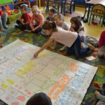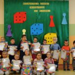 W tym roku nauczyciele tworzyli również warunki do kształtowania pojęć matematycznych oraz wzbogacali wiedzę dzieci dotyczącą przestrzeni kosmicznej w ramach prowadzonych projektów edukacyjnych. Przedszkolaki miały okazję zdobyć wiele umiejętności podczas organizowanych wydarzeń m.in. Dnia Figur Geometrycznych oraz Dnia Matematyki, w którym utrwalały wiadomości matematyczne w zależności od grupy wiekowej. Dzieci uczestniczyły także w Kosmicznym Balu Karnawałowym, podczas którego podziwiały stroje kosmiczne swoich rówieśników oraz pań. Mogły zrobić sobie pamiątkowe zdjęcia w fotobudkach: kosmonauty oraz ufoludka. W projekty realizowane w naszej placówce zaangażowaliśmy również rodziców poprzez zorganizowanie zajęć otwartych o tematyce związanej z matematyką i Kosmosem. Dzieci wraz z opiekunami brały udział w konkursie pt. „Matematyczna Gra Planszowa”, podczas którego mogły wykazać się kreatywnością oraz czerpać radość ze wspólnych chwil z rodzicami.