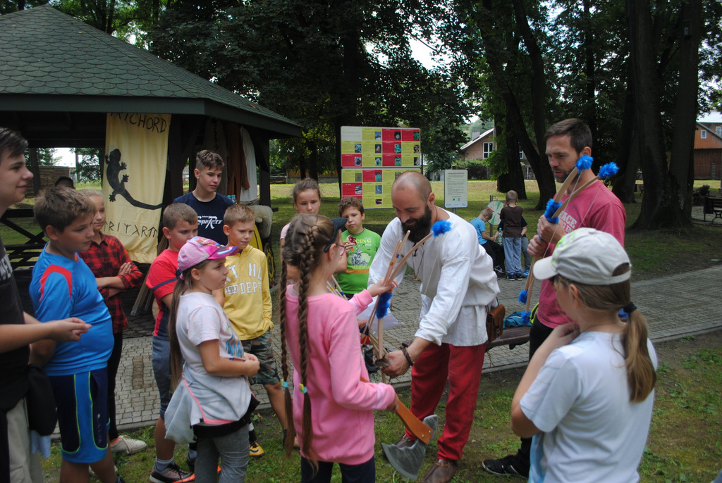 Na warsztatach historycznych uczestnicy zapoznali się ze strojami i bronią z dawnych epok. Warsztaty te noszą nazwę „Gotowi do walki”. Na pierwszych zajęciach dzieci i młodzież zapoznali się z historią Ciężkowic i regionu, poznali dzieje swojej miejscowości na ciekawej prezentacji o dawnych Ciężkowicach. Prowadzący pokazali uczestnikom techniki rekonstrukcyjne oraz stroje i broń różnych okresów historycznych. W piątek odbyły się także pierwsze warsztaty szermierki uczące techniki szermierczej, pracy ze szpadą treningową i koordynacji ruchowej. W najbliższym tygodniu rozpoczną się także trzecie warsztaty w ramach projektu pn. „Smaczne – bo tradycyjne i nasze” gdzie dzieci i młodzież zapoznają się z tradycyjną kuchnią regionu. Na wszystkich uczestników czekają jeszcze dwa wyjazdy edukacyjne. Zapraszamy wszystkich do obejrzenia fotorelacji.