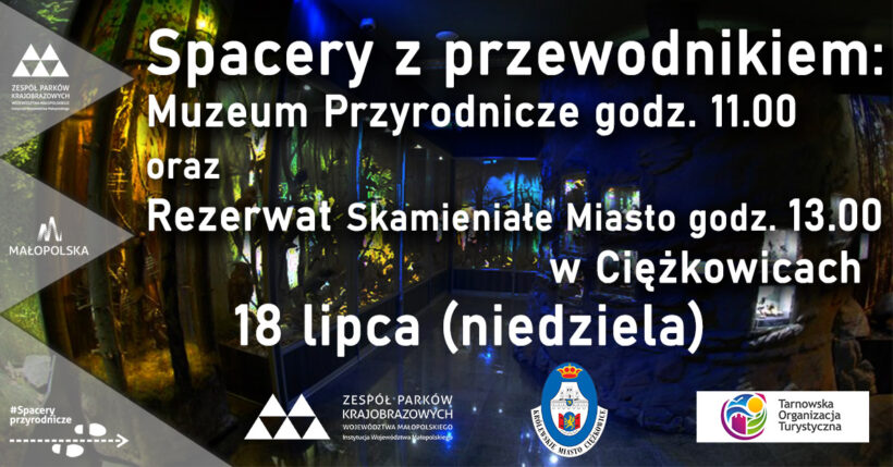 Centrum Kultury i Promocji Gminy Ciężkowice, Zespół Parków Krajobrazowych Województwa Małopolskiego oraz Tarnowska Organizacja Turystyczna zapraszają na bezpłatne spacery z przewodnikiem po Muzeum Przyrodniczym i Rezerwacie „Skamieniałe Miasto” w Ciężkowicach.