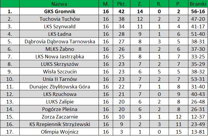 Drużyna seniorów GKS Gromnik w najbliższą sobotę 12 marca meczem w Szynwałdzie z miejscowym LKSem rozpoczyna walkę o obronę 1 miejsca Keeza Klasy Okręgowej, które zajmuje po historycznej rundzie jesiennej. Zdobyte 42 punkty na 48 możliwych do zdobycia to wynik bez precedensu, wynik, który zobowiązuje.